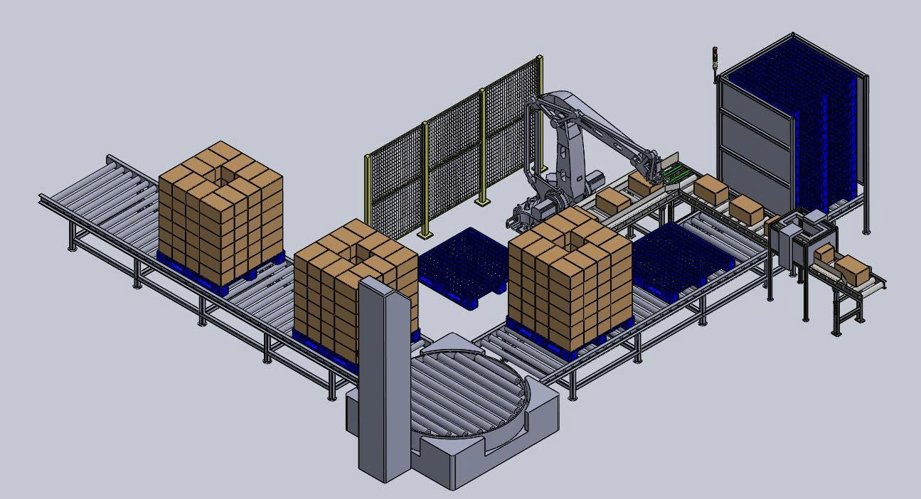 Hệ thống robot palletizing hoạt động theo quy trình khép kín: